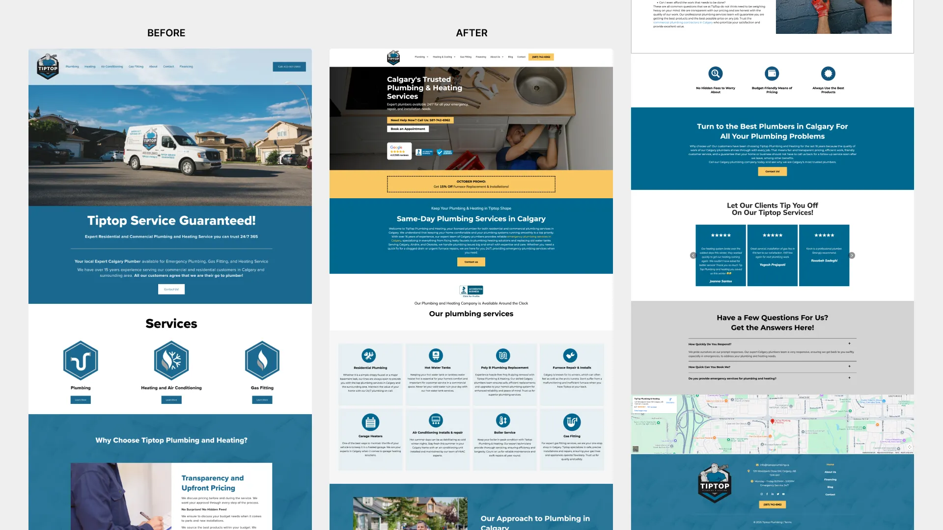 Tiptop Plumbing & Heating is a locally owned and managed company, offering professional plumbing & heating services for both residential and commercial buildings. Despite having a strong foundation in service delivery, Tiptop struggled with poor visibility online, an outdated website, and limited lead generation.