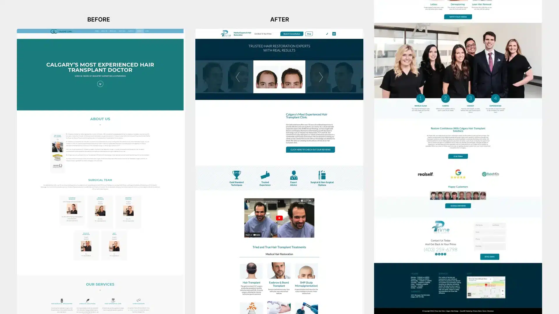 When Prime Hair Clinic approached GrowME, they were in the midst of a rebrand and staff transition. Their existing website no longer represented their evolving identity — it was outdated, difficult to navigate, and overloaded with dense content. While referrals kept business steady, their website generated little to no leads, signaling the need for a complete digital refresh.