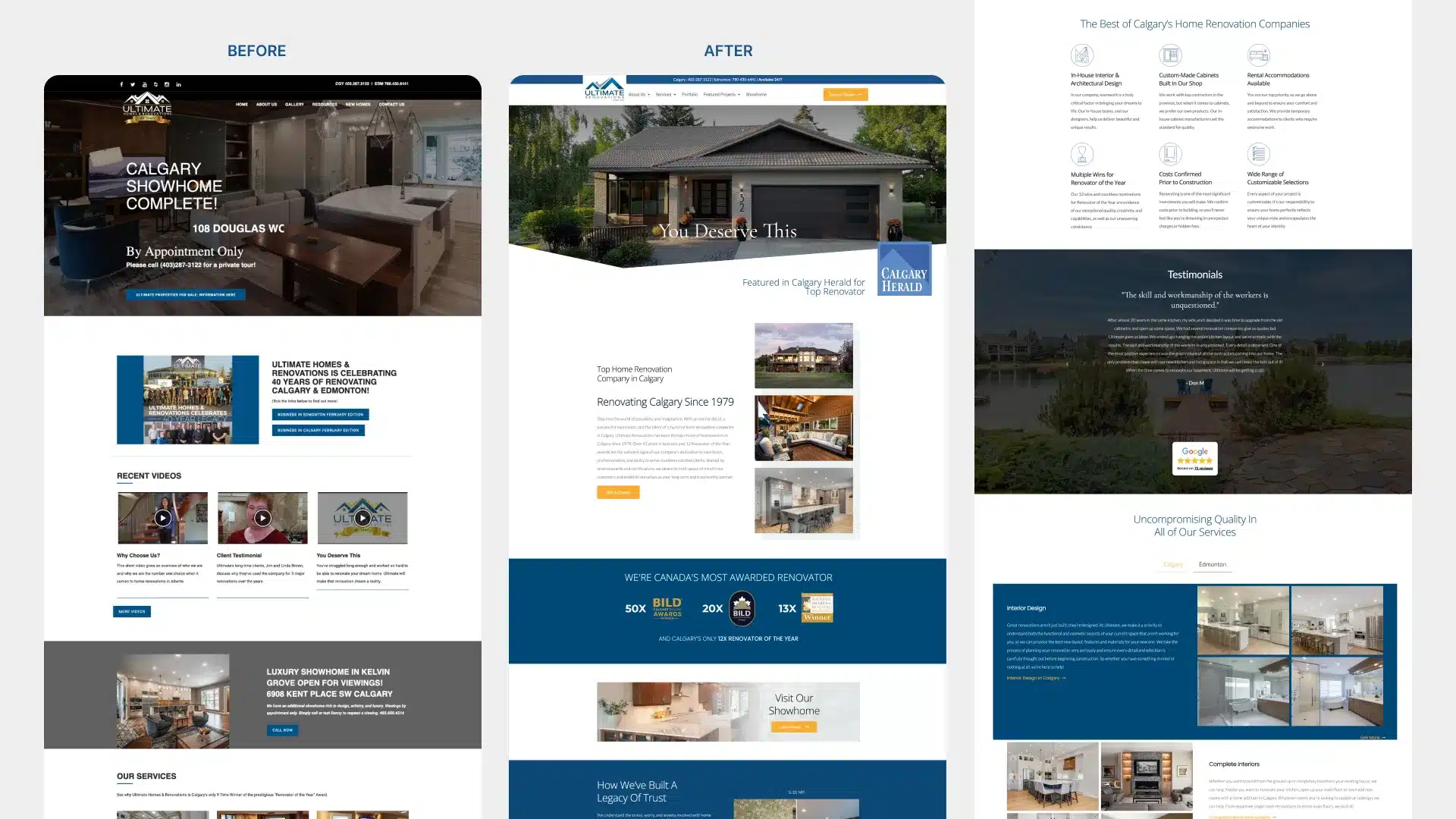 Despite their established reputation and legacy, Ultimate Renovations struggled to translate their success online. They approached GrowME Marketing to modernize their digital presence, improve visibility, and generate consistent organic leads through a strategic website redesign and SEO campaign.